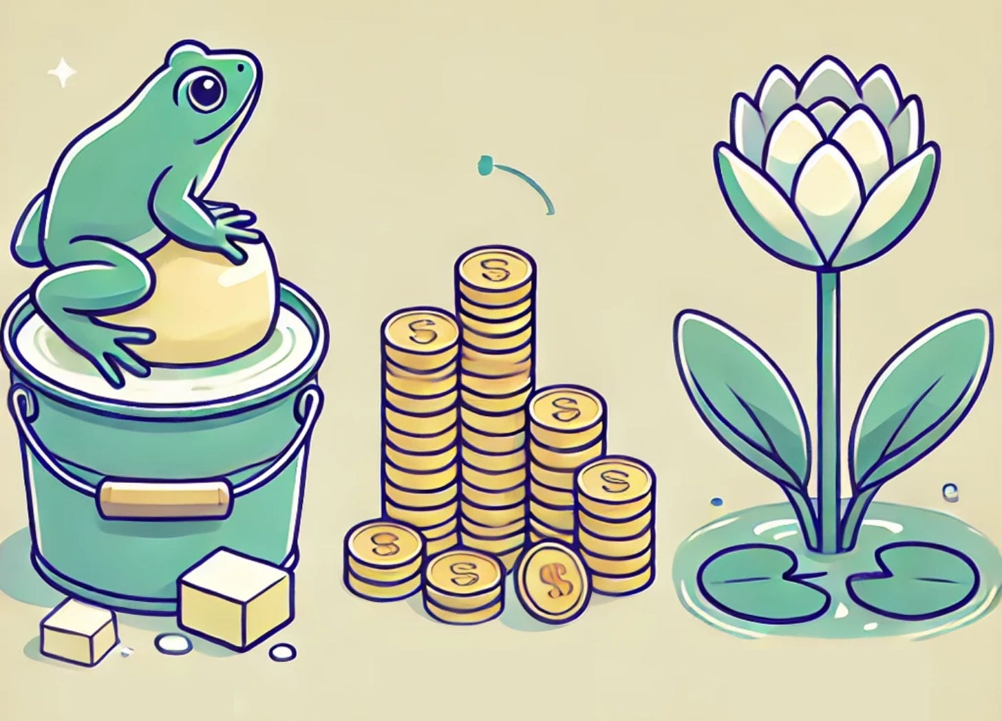 Two frogs fall into a bucket of cream. One frog gives up quickly, sinks, and drowns. The other keeps kicking and struggling, even when it seems hopeless. Eventually, the cream turns into butter, and the frog escapes.