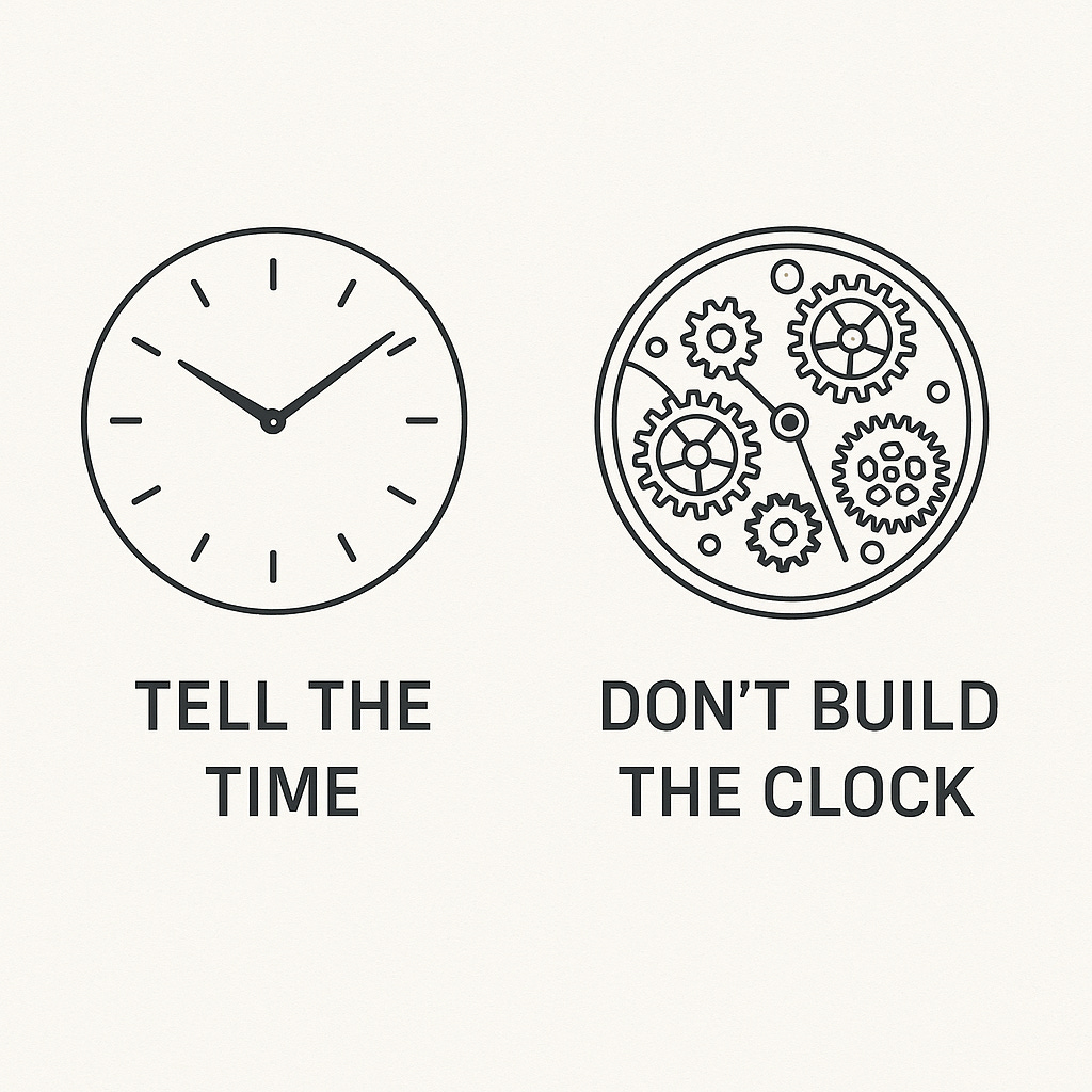 They don’t need the process. They need the point. They don’t want the blueprint. They want to know what time it is.