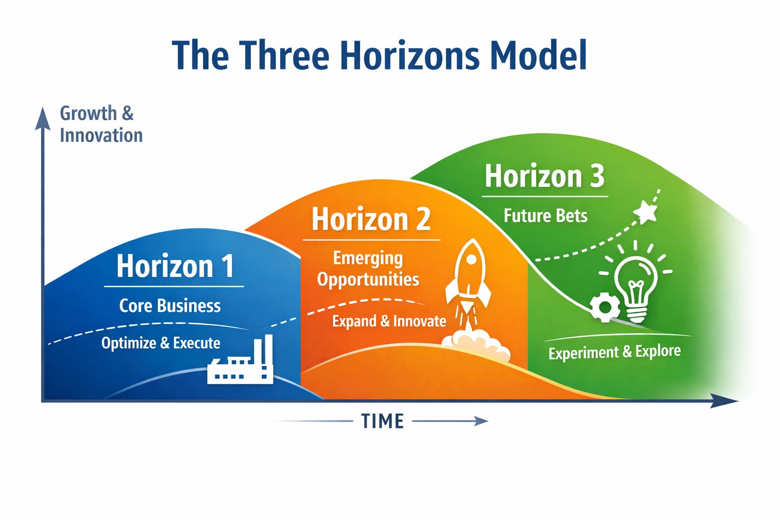 McKinsey introduced the Three Horizons framework to help companies think about growth over time, without neglecting the present or betting everything on an uncertain future.